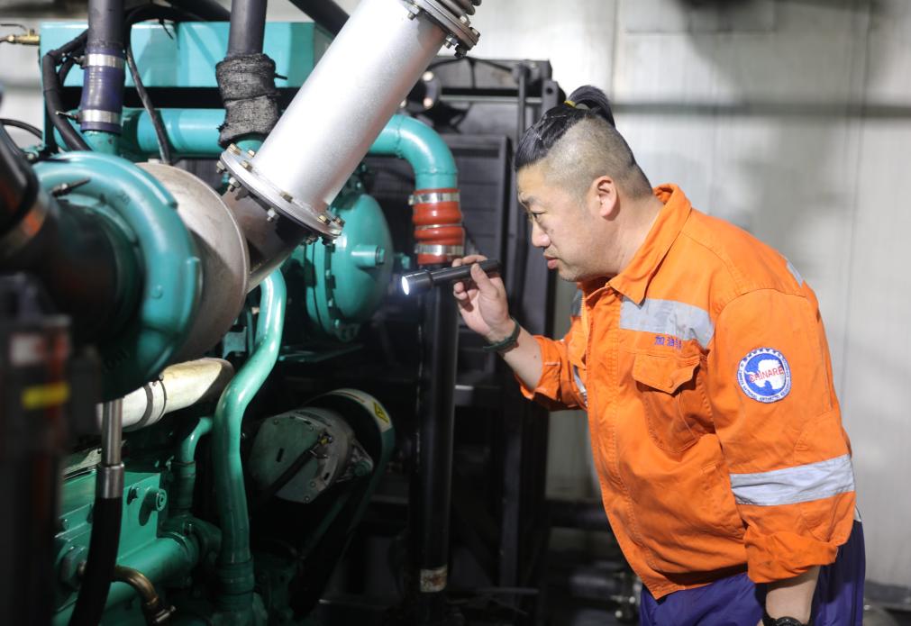 發(fā)電班班長(zhǎng)張冬在對(duì)發(fā)電機(jī)進(jìn)行巡視檢查(12月1日攝)。新華社記者 黃韜銘 攝