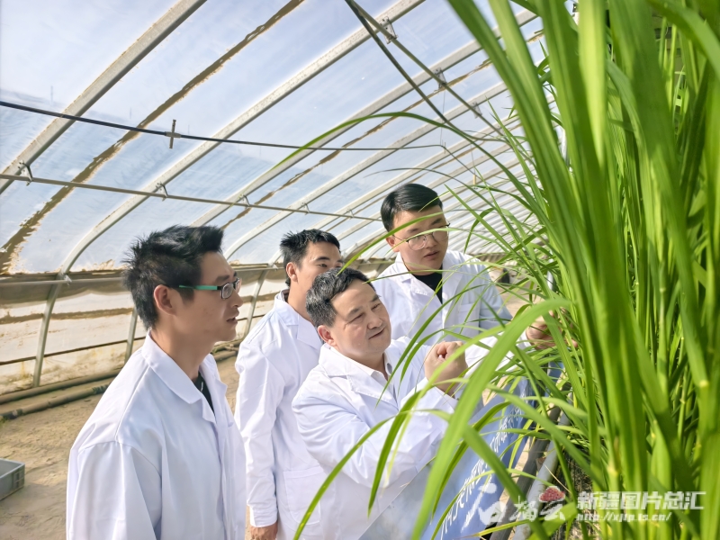 11月20日,和田地區(qū)和田縣萬畝設施農(nóng)業(yè)基地沙漠溫室水稻種植大棚內,中國農(nóng)業(yè)科學院都市農(nóng)業(yè)研究所首席科學家楊其長團隊正在查看水稻長勢。胡禮政攝