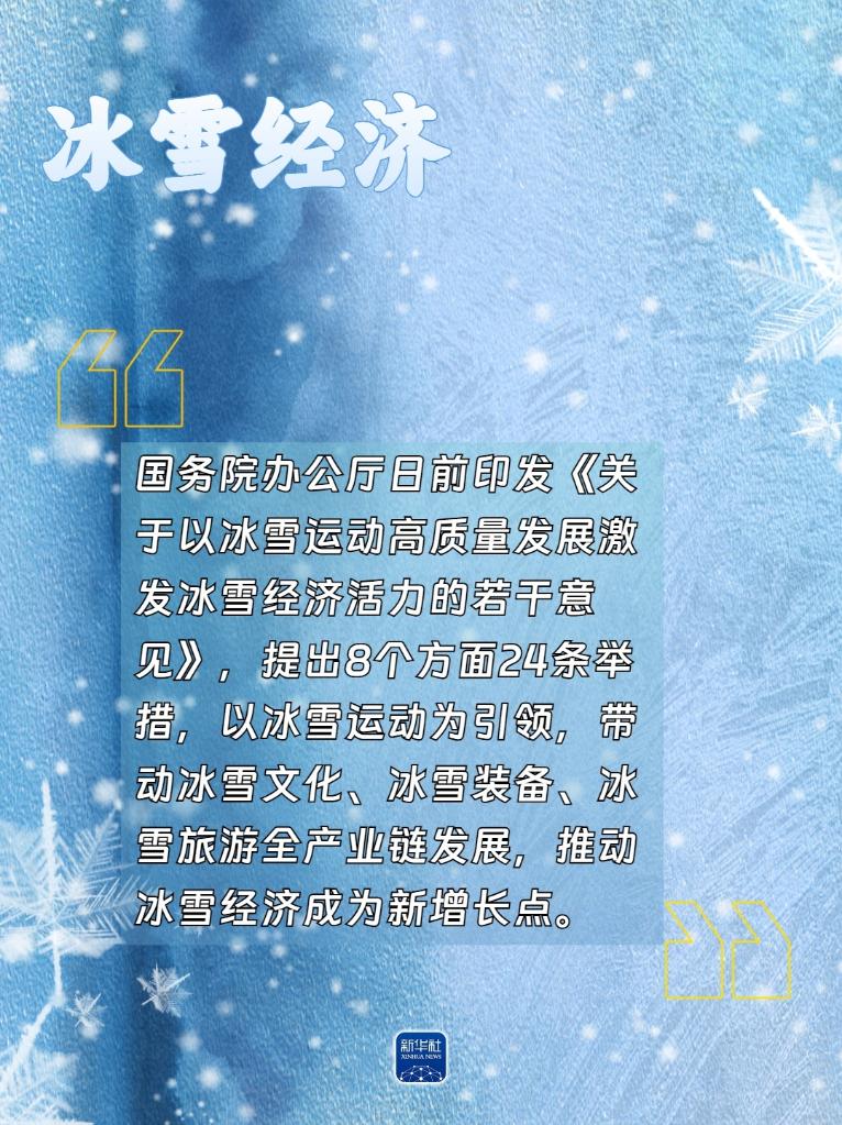 【解析】國務(wù)院辦公廳日前印發(fā)《關(guān)于以冰雪運(yùn)動(dòng)高質(zhì)量發(fā)展激發(fā)冰雪經(jīng)濟(jì)活力的若干意見》,提出8個(gè)方面24條舉措,以冰雪運(yùn)動(dòng)為引領(lǐng),推動(dòng)冰雪經(jīng)濟(jì)成為新增長點(diǎn)。明確到2027年冰雪經(jīng)濟(jì)總規(guī)模達(dá)到1.2萬億元,到2030年冰雪經(jīng)濟(jì)總規(guī)模達(dá)到1.5萬億元。