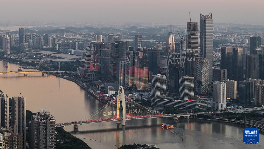 廣州市區(qū)沐浴在夕陽余暉之中(2024年11月29日攝,無人機照片)。