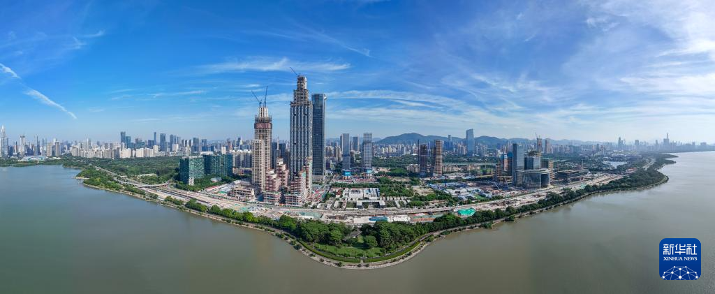 這是建設(shè)中的深圳灣超級總部基地(2024年10月3日攝,無人機全景照片)。