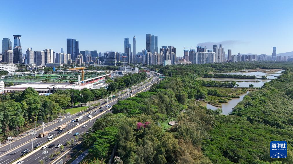 這是位于深圳福田紅樹林濕地(2024年11月29日攝,無人機照片)。