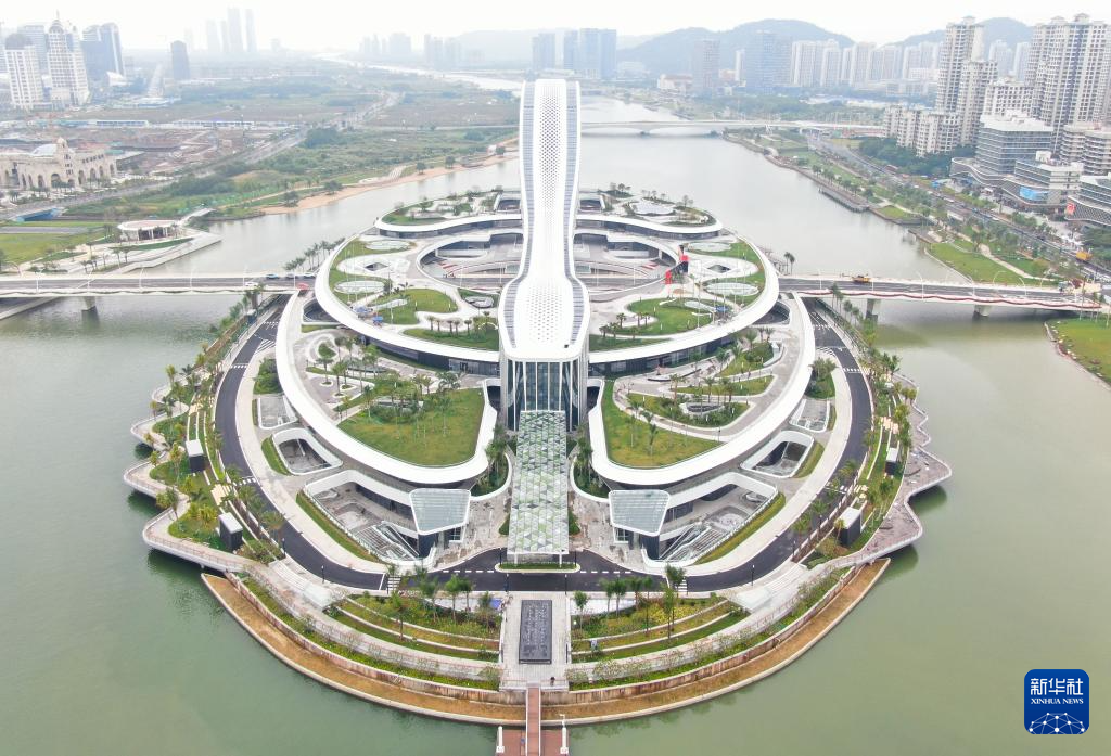這是橫琴粵澳深度合作區(qū)標(biāo)志(2024年11月26日攝,無人機照片)。