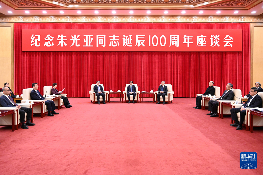 12月25日,紀念朱光亞同志誕辰100周年座談會在北京舉行。中共中央政治局常委、全國政協(xié)主席王滬寧出席座談會,并在會前會見了朱光亞同志親屬。新華社記者 申宏 攝