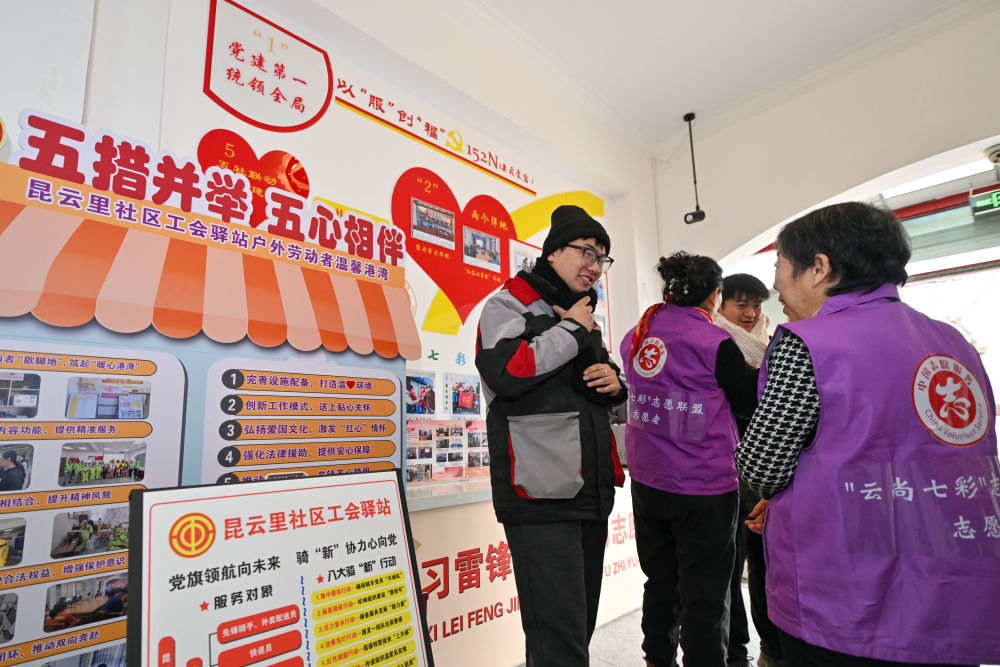 不僅僅是張德犇,越來越多的新就業(yè)群體在天津這座城市感受到了溫暖。走進(jìn)紅橋區(qū)總工會在紅旗社區(qū)建設(shè)的工會驛站,外賣騎手張興智送完一單外賣后來到驛站喝口熱水,他和工作人員你一言我一語地輕松交談,聊起了社區(qū)里的新鮮事。
