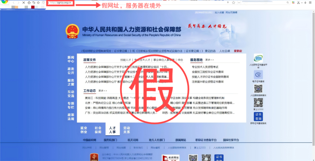 (仿冒人力資源和社會保障部相關網(wǎng)站,網(wǎng)址域名多次跳轉)