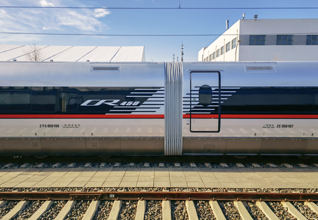 環(huán)形試驗軌道上,兩列時速400公里的CR450動車組列車首次亮相,標(biāo)志著由國鐵集團牽頭實施的CR450科技創(chuàng)新工程取得重大突破。