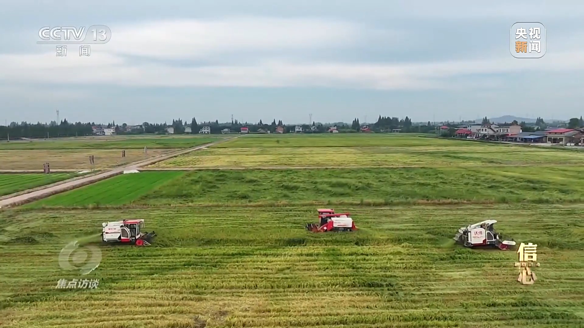 農(nóng)業(yè)是一切發(fā)展的基礎(chǔ),今年我國糧食不僅連續(xù)第21年迎來豐收,而且首次超過了1.4萬億斤。位于湖北荊門的一片農(nóng)田,豐收的色彩濃郁飽滿,今年這里實施大豆玉米帶狀復(fù)合種植,第一次采用6行玉米4行大豆相間種植,實現(xiàn)了一地雙收,畝產(chǎn)首次超過了1200斤。廣東清遠(yuǎn),水稻田里一片金黃,走近去看,粒粒飽滿,這里種植的是絲苗米。在收割機的幫助下,稻谷顆粒歸倉。通過現(xiàn)代化農(nóng)業(yè)技術(shù)的應(yīng)用,這里確保了水稻穩(wěn)產(chǎn)高產(chǎn),農(nóng)業(yè)產(chǎn)業(yè)化跑出了加速度,僅一季晚稻的畝產(chǎn)量就超過了1200斤,和去年相比增加了近10%。2024年,我國糧食再獲豐收,單產(chǎn)提升是重要的支撐。民以食為天,把中國飯碗牢牢端住,讓人倍感踏實。