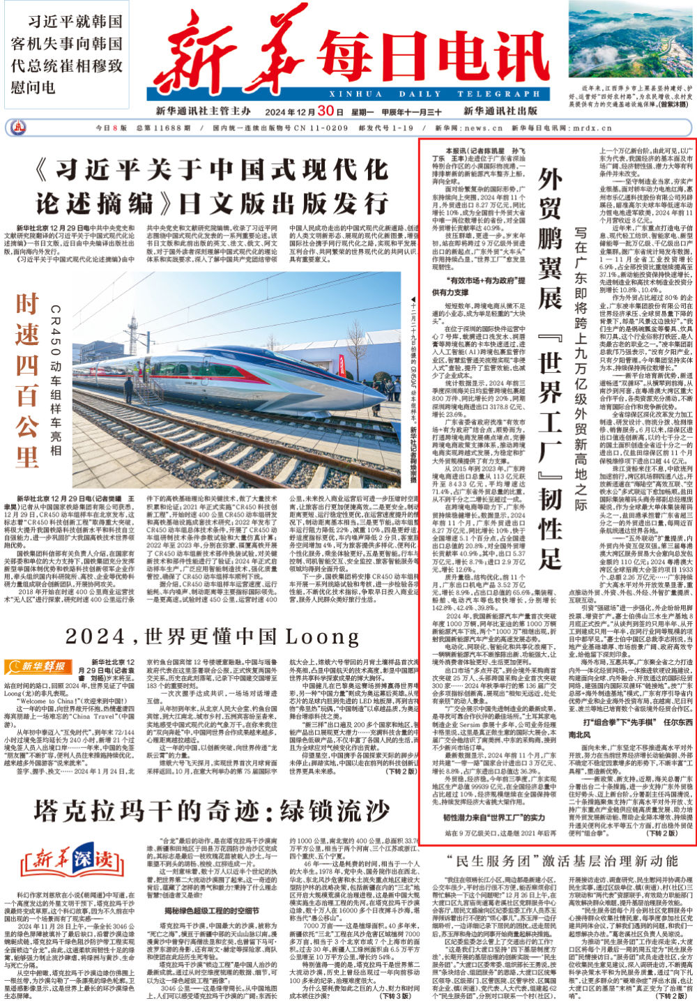 ——新政策、新支持。近期,海關(guān)總署廣東分署出臺(tái)二十條措施,進(jìn)一步支持廣東外貿(mào)穩(wěn)住好勢(shì)頭、邁上新臺(tái)階。分署副主任馮國(guó)清說(shuō),二十條措施聚焦支持廣東高水平對(duì)外開放、支持廣東重點(diǎn)產(chǎn)業(yè)鏈供應(yīng)鏈高質(zhì)量發(fā)展、助力培育外貿(mào)發(fā)展新動(dòng)能、幫助企業(yè)降本增效、持續(xù)提升通關(guān)便利化水平等五個(gè)方面,打出穩(wěn)外貿(mào)促便利“組合拳”。