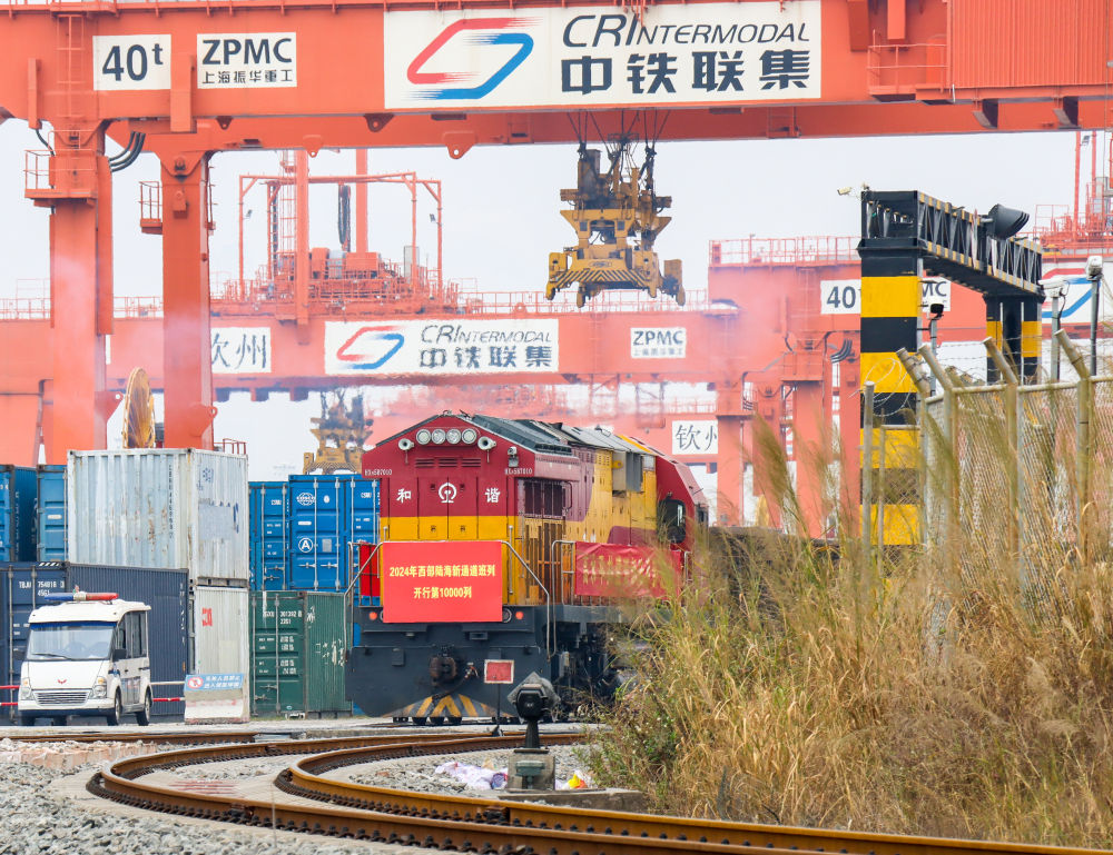 2024年西部陸海新通道班列第10000列發(fā)車。(北部灣港集團(tuán)供圖)