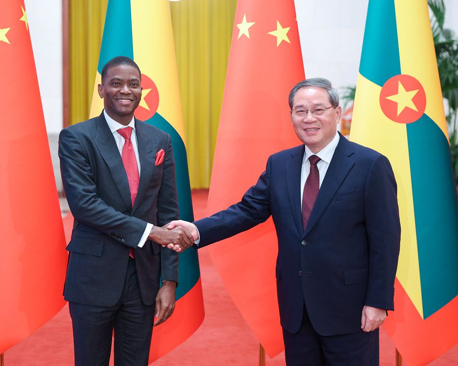 國務(wù)院總理李強(qiáng)1月13日在北京人民大會堂同來華進(jìn)行正式訪問的格林納達(dá)總理米切爾舉行會談。