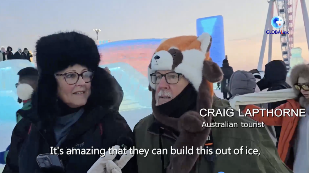 一旁的克雷格·拉普索恩頭戴俏皮卡通棉帽,同樣十分感慨。他驚嘆于能工巧匠們用冰雪構(gòu)筑如此繁多的美麗景觀,不可思議之感溢于言表。他還留意到哈爾濱冰雪大世界為成人與兒童精心配備冰上自行車等娛樂設施,深感此地適宜全家出游,讓每一位家庭成員都能投身冰雪運動,暢享冰雪王國的歡樂氛圍。