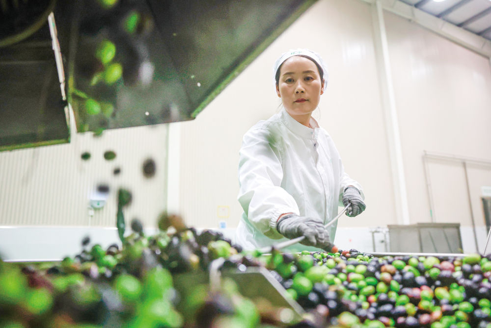 在中國西北的甘肅隴南,上百萬畝油橄欖已采摘進(jìn)入榨油生產(chǎn)線,當(dāng)?shù)厝舜汗?jié)拜年帶上一盒新榨橄欖油,健康又體面;