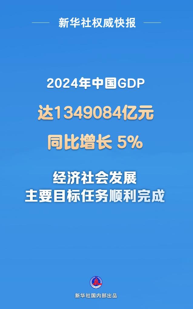 2024年中國(guó)國(guó)內(nèi)生產(chǎn)總值(GDP)達(dá)到1349084億元