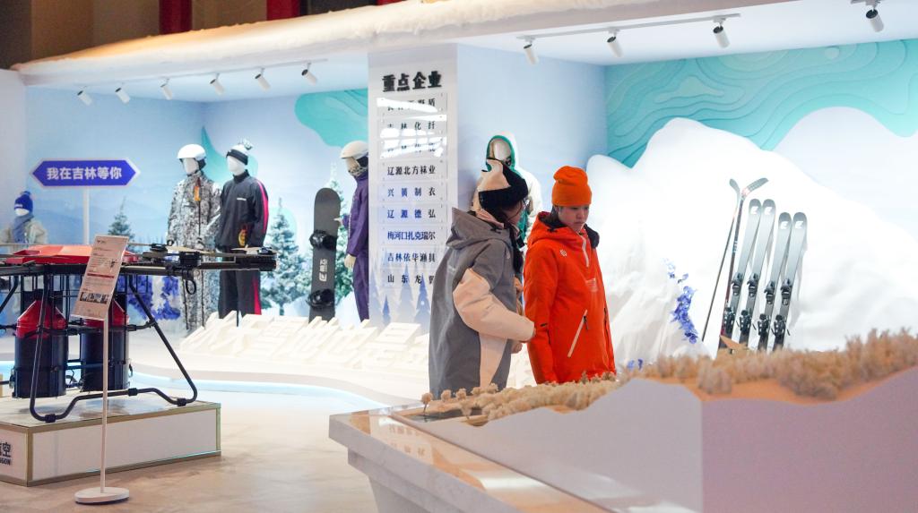 2024年12月19日,游客在吉林市北大湖滑雪度假區(qū)內的冰雪裝備展區(qū)參觀。新華社記者顏麟蘊 攝