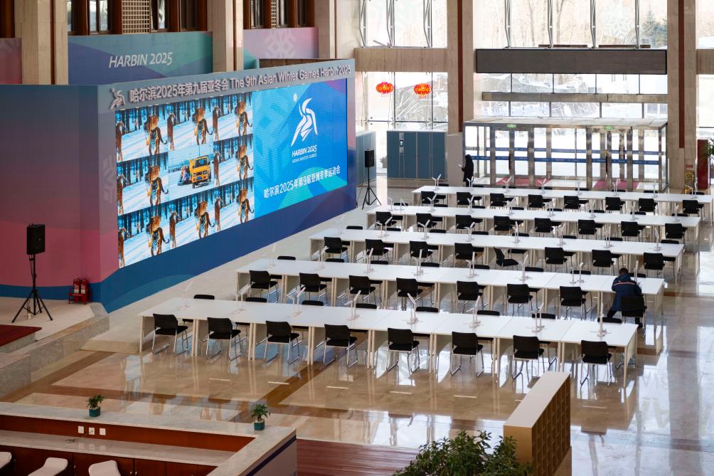 這是1月16日拍攝的2025年第九屆亞冬會(huì)雪上賽區(qū)亞布力山地媒體中心內(nèi)景。新華社記者 謝劍飛 攝