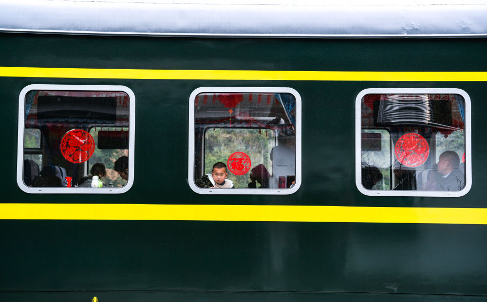 1月18日,在滬昆鐵路六個(gè)雞火車站,沿途村民乘坐5640次列車出行。新華社記者 楊文斌 攝