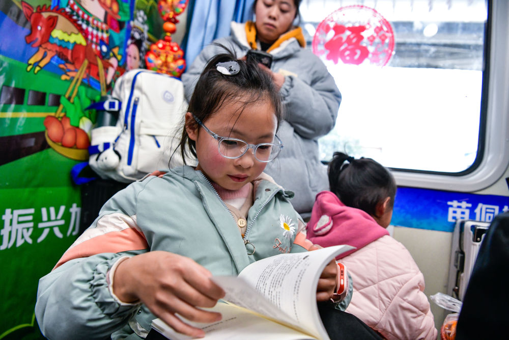1月18日,一名小女孩在5640次列車上看書。新華社記者 楊文斌 攝