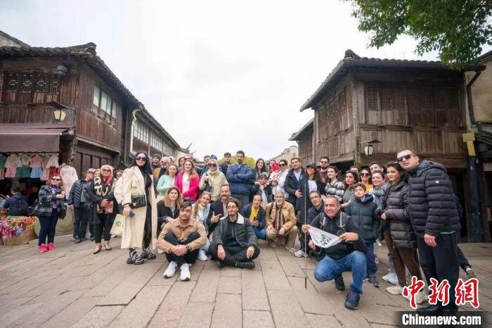 外國(guó)游客“打卡”烏鎮(zhèn)景區(qū)。桐鄉(xiāng)市委宣傳部供圖