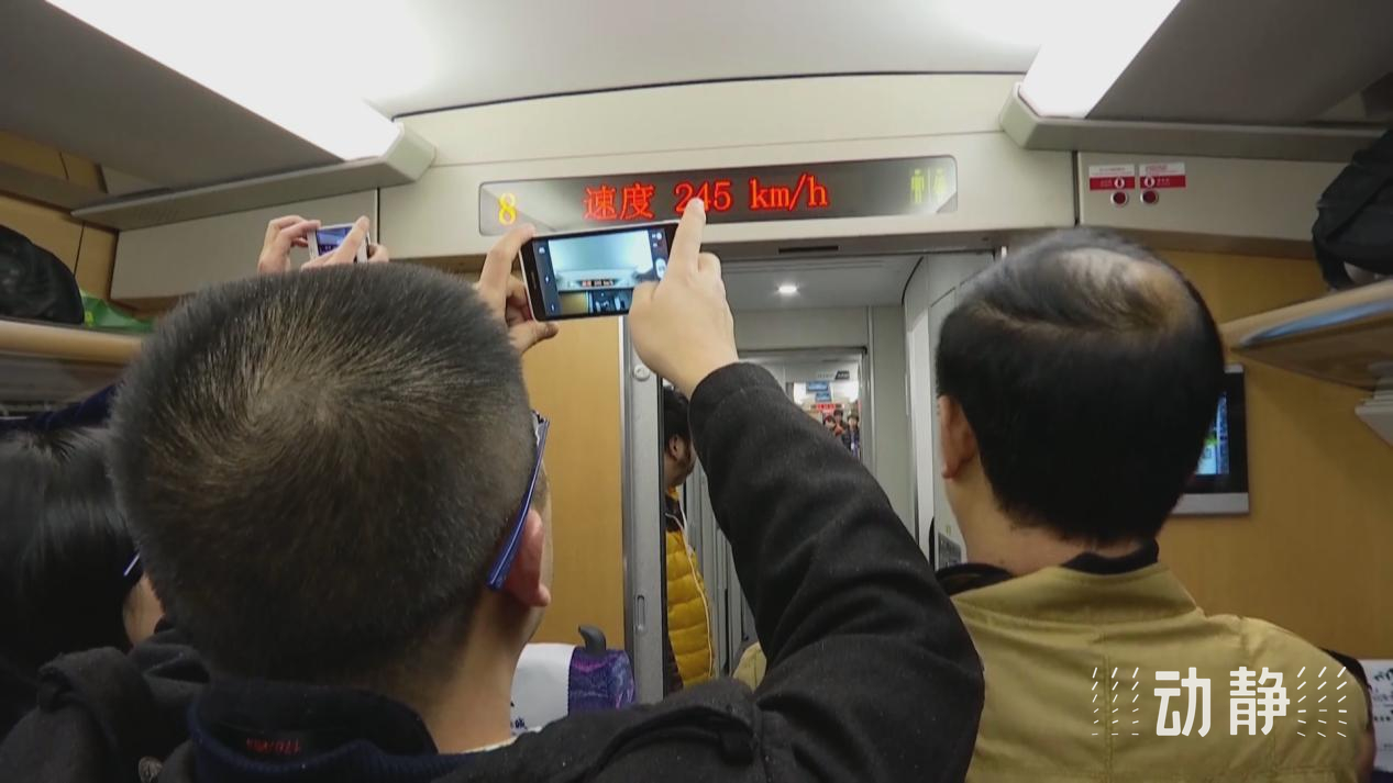 這趟列車的設(shè)計時速為250公里,開車不到10分鐘,時速就達(dá)到了245公里,乘客們紛紛用手機(jī)和相機(jī)記錄著顯示器上不斷攀升的車速。
