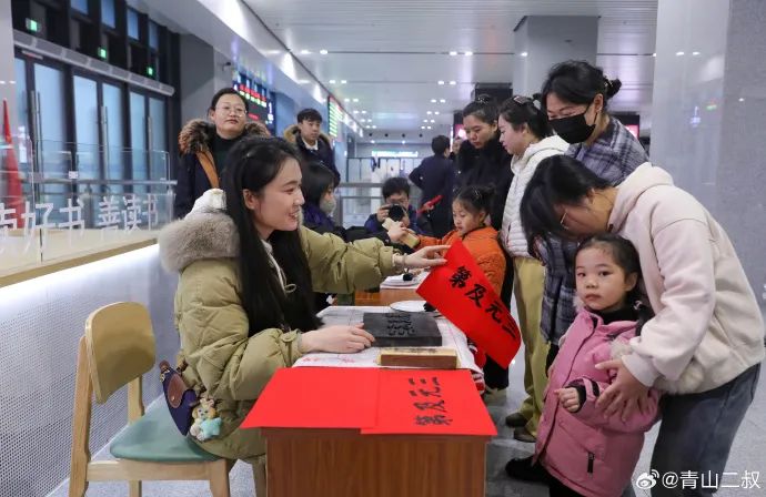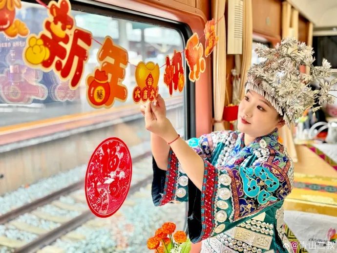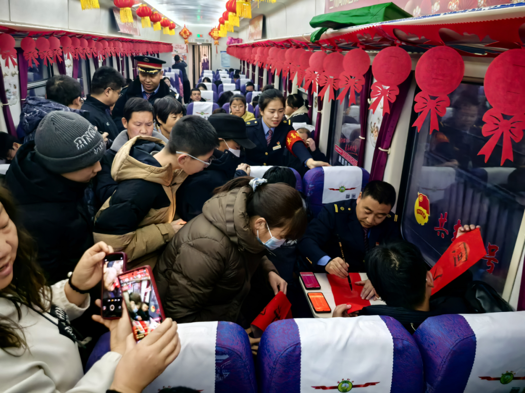 在從隴西開(kāi)往青林的7504/7503次列車(chē)上開(kāi)展的“新春送?!被顒?dòng),現(xiàn)場(chǎng)書(shū)寫(xiě)福字與春聯(lián),把誠(chéng)摯美好的新春祝福融入其中。