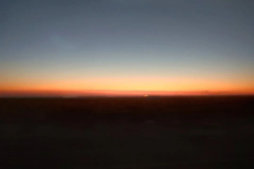 車(chē)窗外的晚霞。
