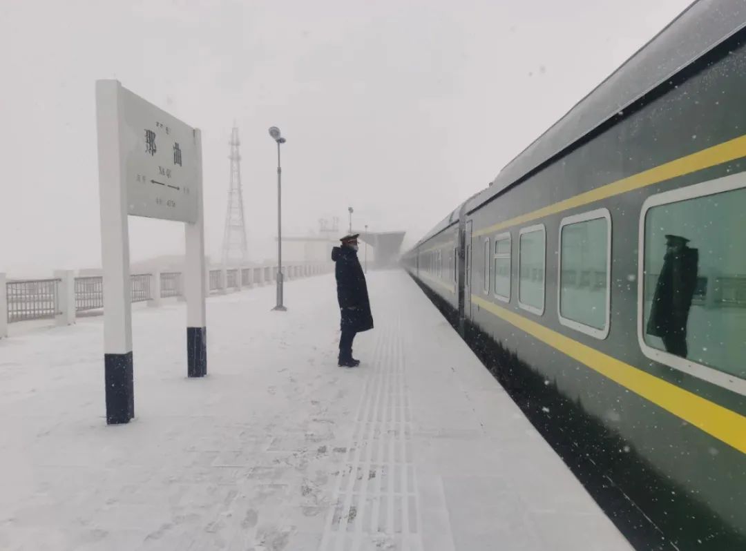 不畏高寒缺氧,那曲站客運(yùn)員在海拔4513米接車(chē)。
