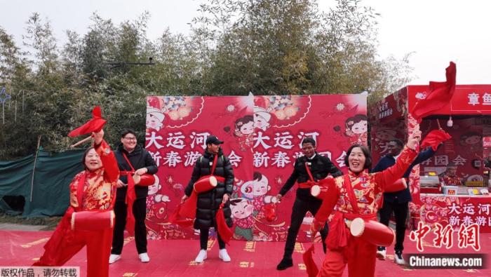 大運(yùn)河新春游園會(huì)腰鼓表演。中新網(wǎng) 林勐男 攝