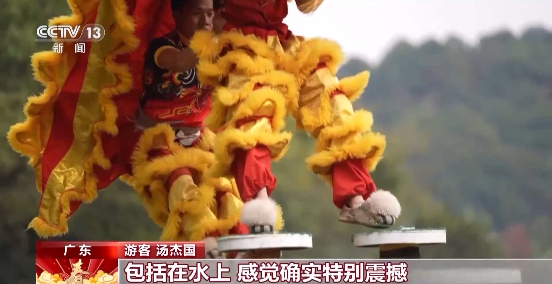 游客 湯杰國:我的家鄉(xiāng)在河西走廊甘肅張掖?,F(xiàn)場看獅子這種閃轉(zhuǎn)騰挪,包括在水上,感覺確實特別震撼,我覺得這就是中華民族精神的傳承,特別厲害。
