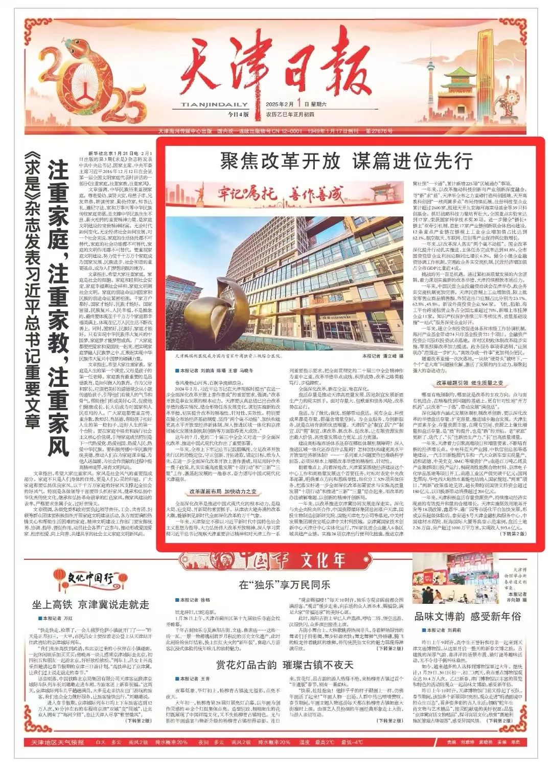 2024年2月,習近平總書記在天津視察時提出“在進一步全面深化改革開放上善作善成”的重要要求,強調(diào):“改革開放是事業(yè)發(fā)展的根本動力。天津要認真總結已出臺改革舉措的落實情況,結合形勢任務發(fā)展變化,謀劃實施新的改革舉措,切實提升改革的精準性、針對性、實效性。特別要在健全市場經(jīng)濟基礎制度、堅持‘兩個毫不動搖’、加快構建更高水平開放型經(jīng)濟新體制、深入推進區(qū)域一體化和京津同城化發(fā)展體制機制創(chuàng)新等方面取得更大成效?!?/p>