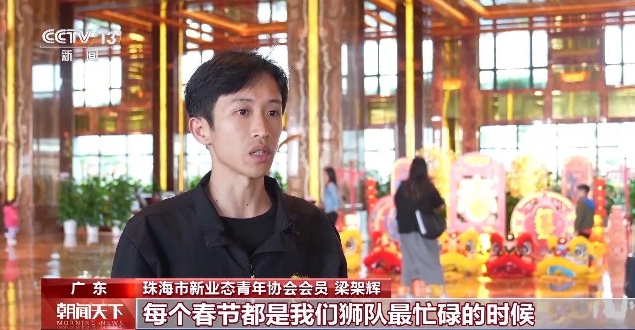 珠海市新業(yè)態(tài)青年協(xié)會(huì)會(huì)員 梁架輝:每個(gè)春節(jié)都是我們獅隊(duì)最忙碌的時(shí)候,但是我們也不覺得辛苦,奮斗的青春最美麗,希望為大灣區(qū)的新春增添更多喜慶氣氛。