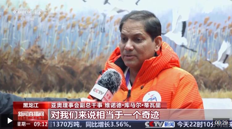在接受總臺記者采訪時,他表示很榮幸能成為本屆亞冬會的一名火炬手,并對賽會籌備工作給予高度評價。