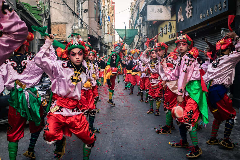 甲子英歌隊邊走邊敲槌,走遍甲子鎮(zhèn)的每個角落。受訪者供圖