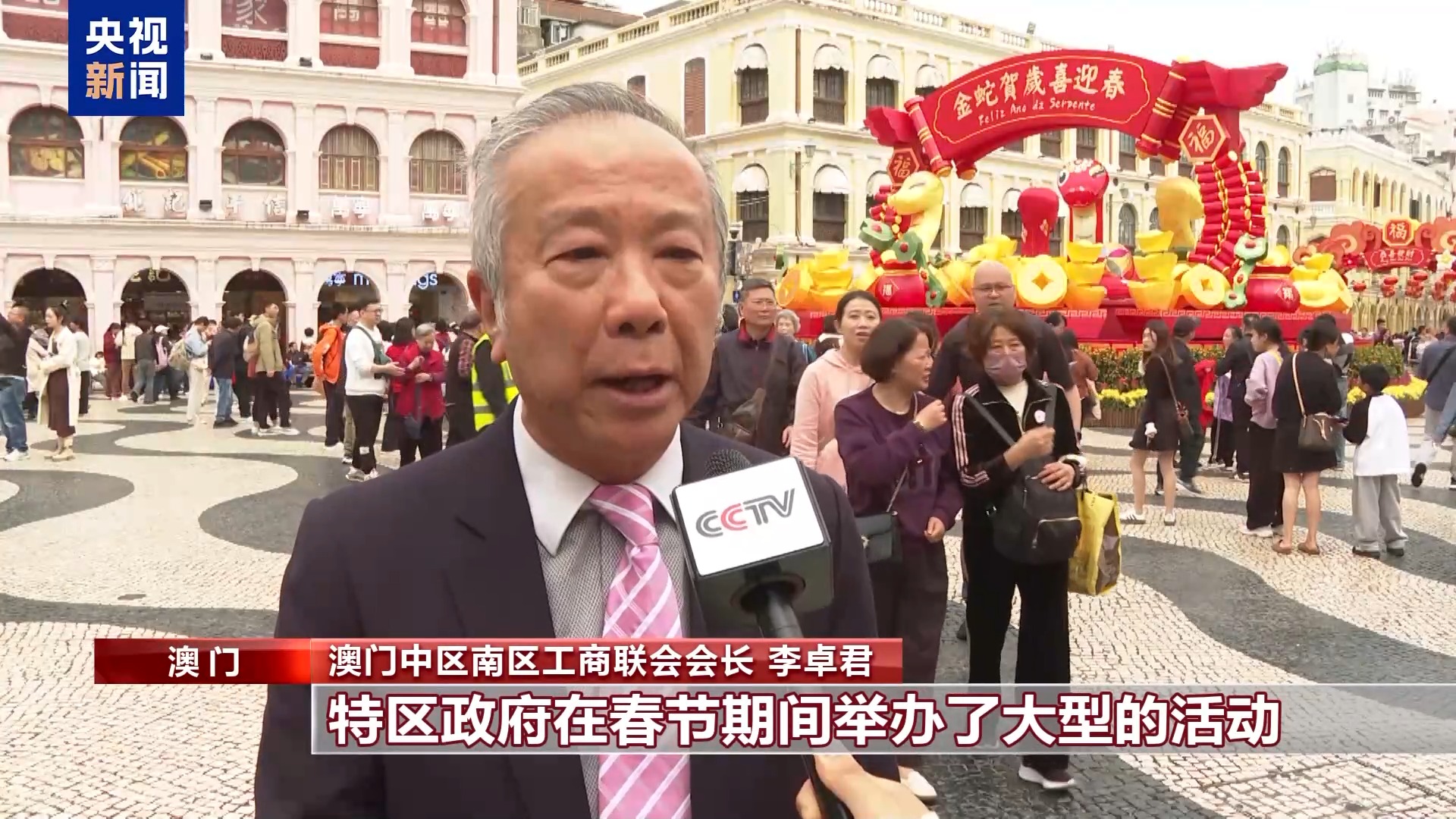 澳門中區(qū)南區(qū)工商聯(lián)會(huì)會(huì)長 李卓君:特區(qū)政府在春節(jié)期間舉辦了大型的活動(dòng),比如花車巡游、煙花表演以及金龍獻(xiàn)瑞巡游,都讓游客很有新鮮感。