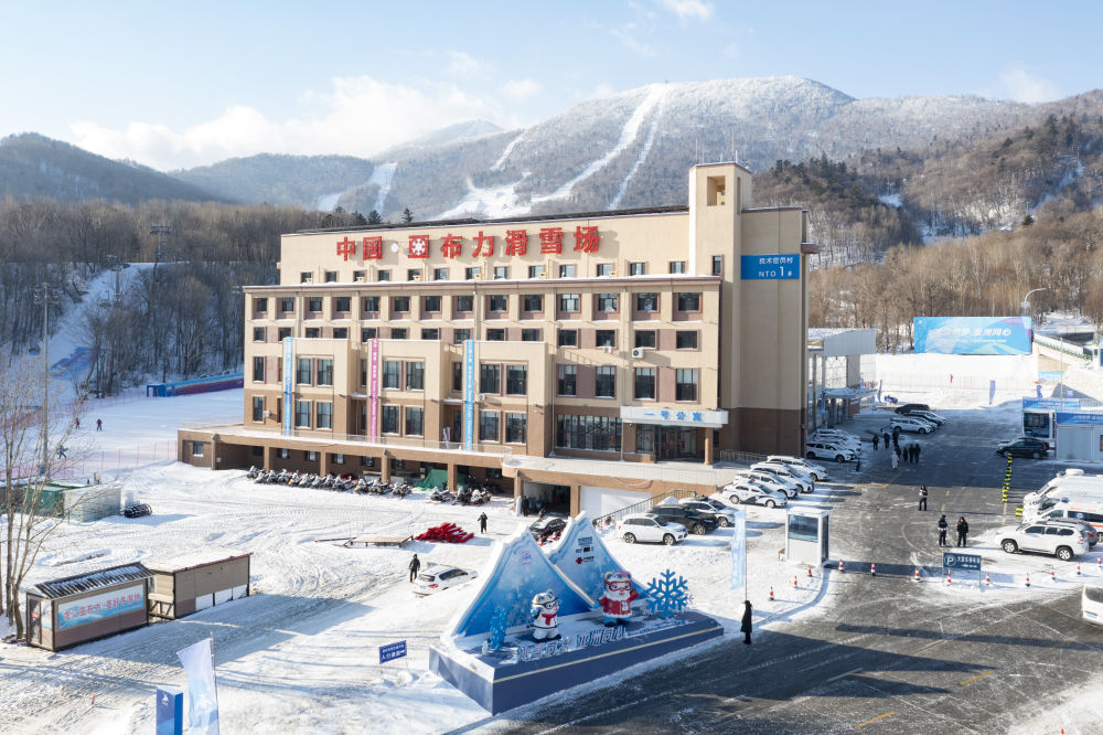 這是1月16日拍攝的位于亞布力滑雪場內(nèi)的第九屆亞冬會雪上賽區(qū)一角(無人機(jī)照片)。新華社記者謝劍飛攝