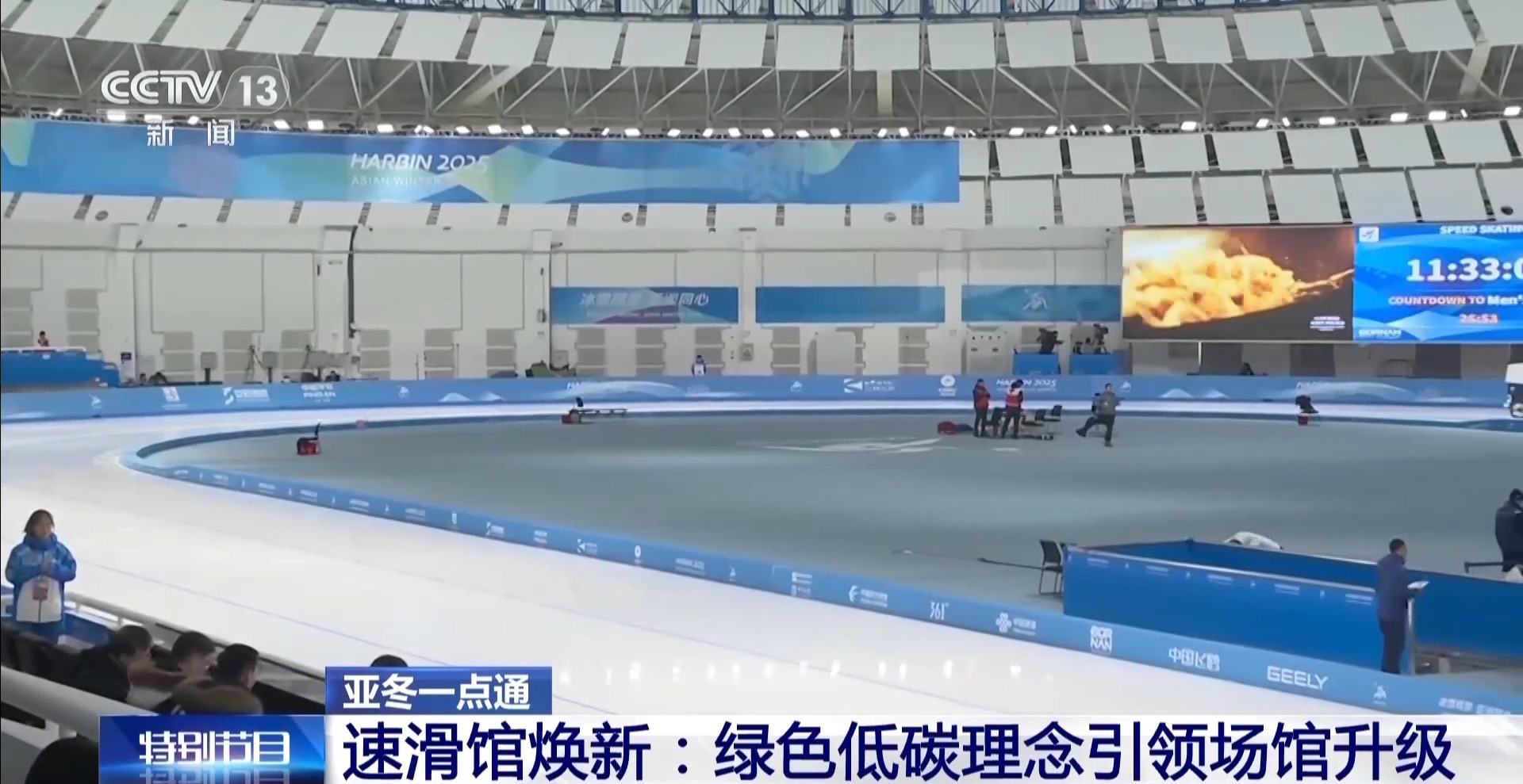 此外,運動員在激烈的比賽中,冰刀會破壞冰面。所以,在比賽間隙時就要進(jìn)行澆冰,將滑道的平整度、溫度調(diào)整到最好狀態(tài)。本屆亞冬會,場館中的澆冰車更新為了先進(jìn)的電子澆冰車,能把水均勻平整地澆在冰面上,隨后冰層下面的冷排設(shè)備會將低溫傳導(dǎo)到冰面上,讓水快速冰凍,從而起到修復(fù)冰場的作用。澆冰的效率和精細(xì)化程度更高,保障了各國運動員們能滑出好成績。