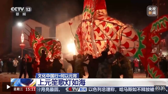 中國(guó)社會(huì)科學(xué)院民族文學(xué)研究所研究員、北京民間文藝家協(xié)會(huì)副主席 毛巧暉:相傳在漢代我們就有過(guò)元宵節(jié)的習(xí)俗,但當(dāng)時(shí)是叫“正月十五”或者叫“正月望”。這個(gè)燈,可能和中國(guó)上古對(duì)火的崇拜有很大的關(guān)系,后來(lái)也跟傳入的佛教文化結(jié)合,逐步形成了觀燈賞燈的習(xí)俗。燈又和中國(guó)的“丁”是諧音,寓意吉祥,添丁進(jìn)口,人丁興旺。
