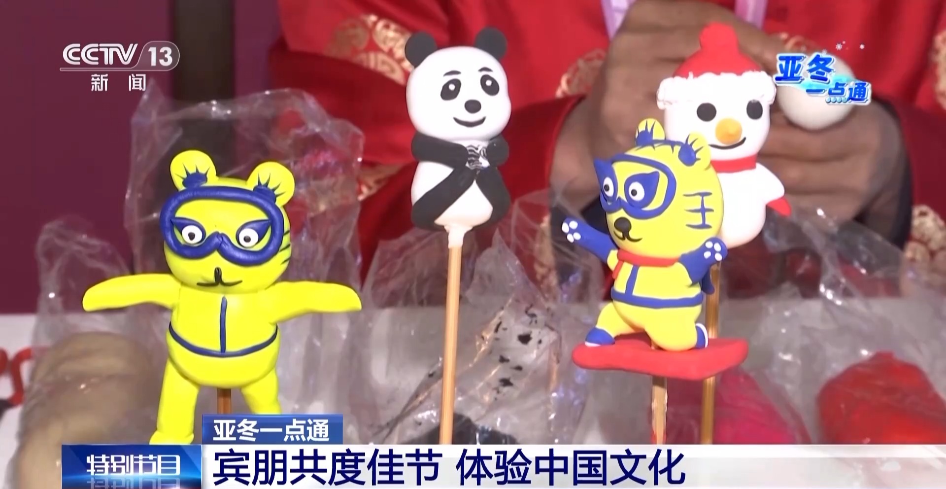我旁邊就是面塑技藝的展臺,面塑在漢代就有文字記載,唐宋與曲藝結合,明清成為謀生的手段。制作材料以面粉、糯米粉為主,搭配蜂蜜等,可用食用色素調色。這也是我們國家的非物質文化遺產,運動員可以到這里一起來感受和體驗非遺項目,現(xiàn)在工作人員正在做的吉祥物一會兒會送給運動員。