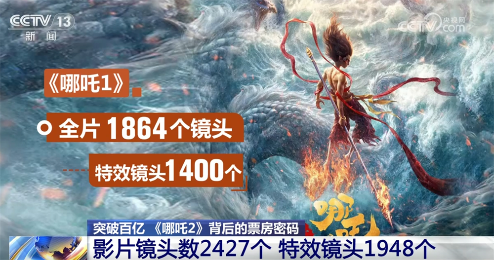 據(jù)電影主創(chuàng)團(tuán)隊提供的數(shù)據(jù):《哪吒1》,也就是《哪吒之魔童降世》全片1864個鏡頭,特效鏡頭1400個;而《哪吒2》,鏡頭數(shù)達(dá)到2427個,其中特效鏡頭1948個。影片中的每一個特效鏡頭、每一幀畫面都是138家動畫公司、4000多名動畫人的合力托舉。