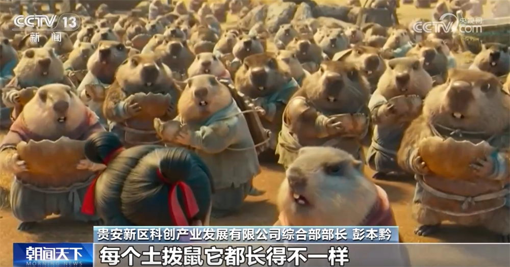 貴安新區(qū)科創(chuàng)產(chǎn)業(yè)發(fā)展有限公司綜合部部長彭本黔稱:“導(dǎo)演要求每一個天兵都要有自己的一個構(gòu)圖,每個土撥鼠都長得不一樣,對渲染的算力要求很高,要是渲不好就很模糊了。整個《哪吒之魔童鬧海》制作耗時5年,在我們這里渲染基本上都用了小三年的時間?!?/p>