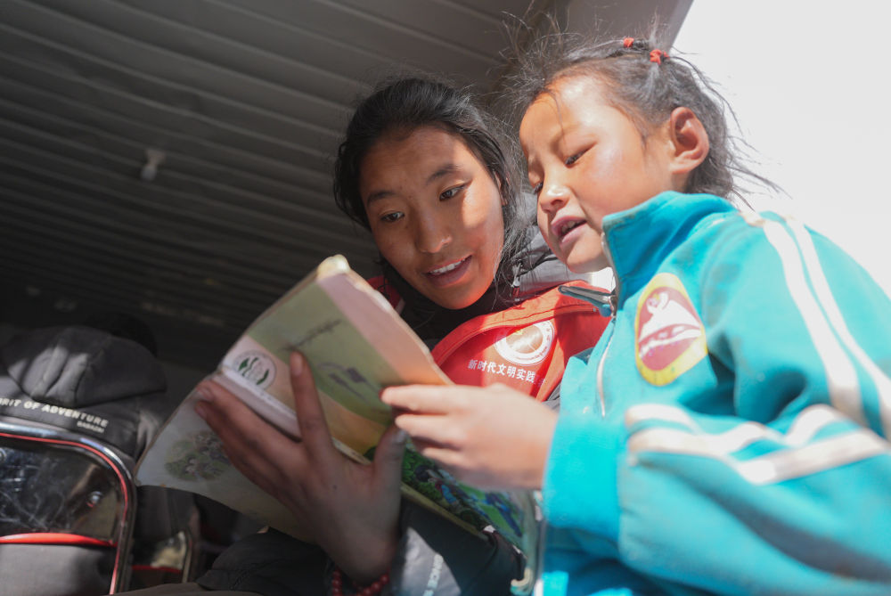 1月25日,在定日縣曲洛鄉(xiāng)熱木青村安置點(diǎn),大學(xué)生志愿者在安置點(diǎn)在給孩子們輔導(dǎo)功課。新華社記者 晉美多吉 攝
