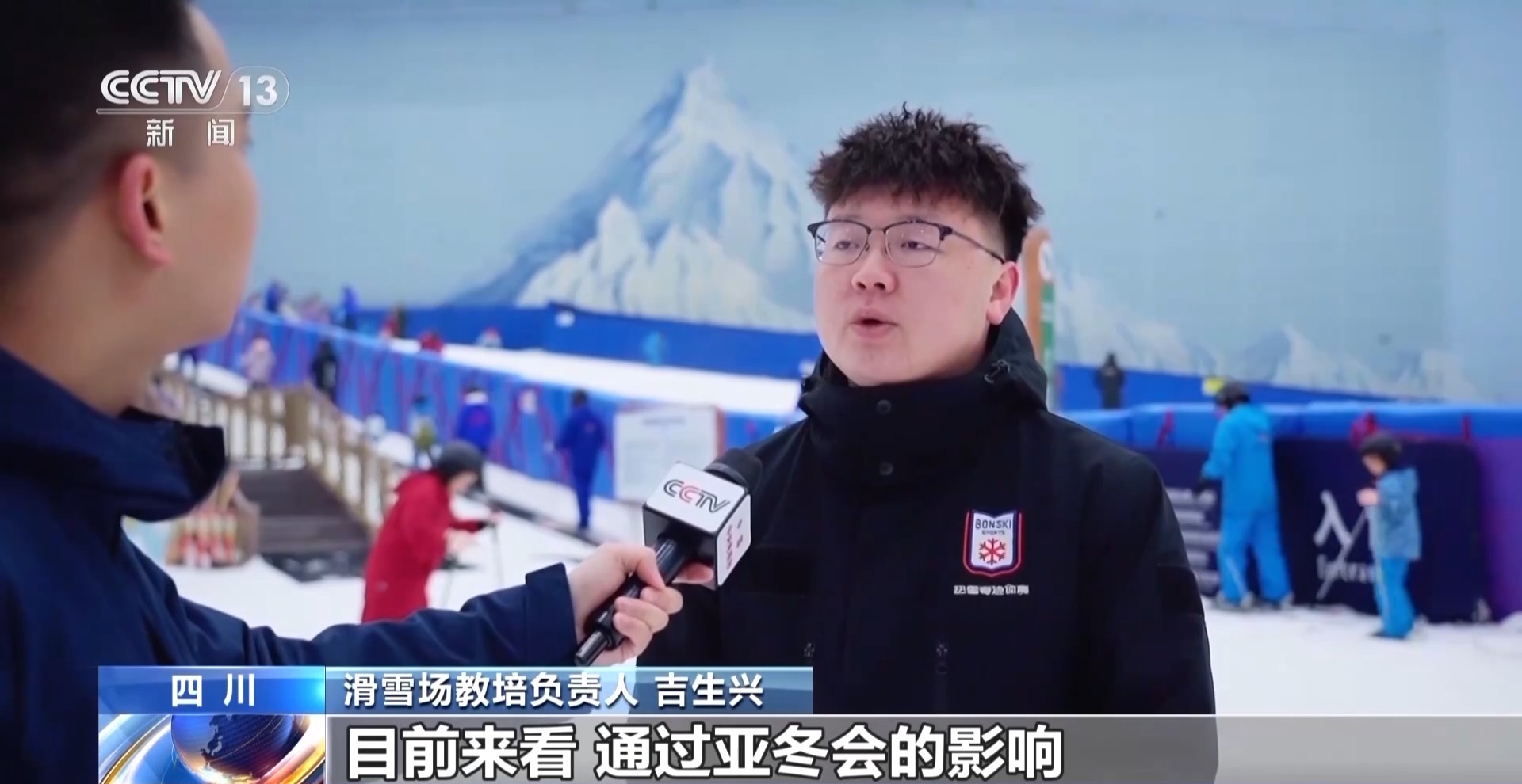 總臺(tái)記者 趙雄:我現(xiàn)在是在我國(guó)西南地區(qū)最大的室內(nèi)滑雪場(chǎng),這里常年的溫度是零下6℃。在現(xiàn)場(chǎng)我們看到一共有六個(gè)不同的雪道,涵蓋了初、中、高各個(gè)不同的階段。不僅如此,在這里還有一個(gè)5000㎡的冰雪樂(lè)園。受亞冬會(huì)的影響,越來(lái)越多的人會(huì)選擇到這里來(lái)體驗(yàn)冰雪樂(lè)趣。