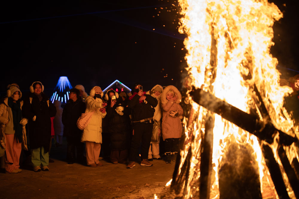 游客在漠河市北極村游玩(2024年2月2日攝)。