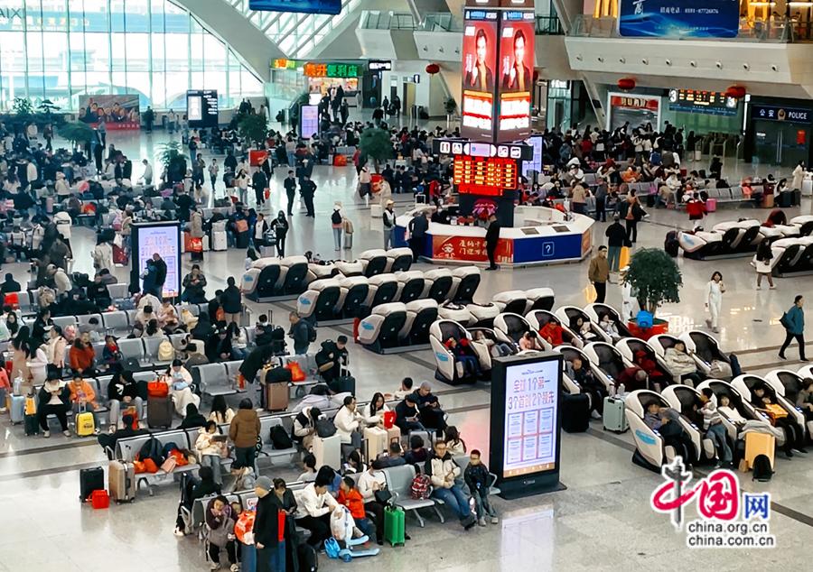 2025年春運(yùn)期間,旅客在廈門站有序候車。中國網(wǎng)發(fā) 安昕宇/攝