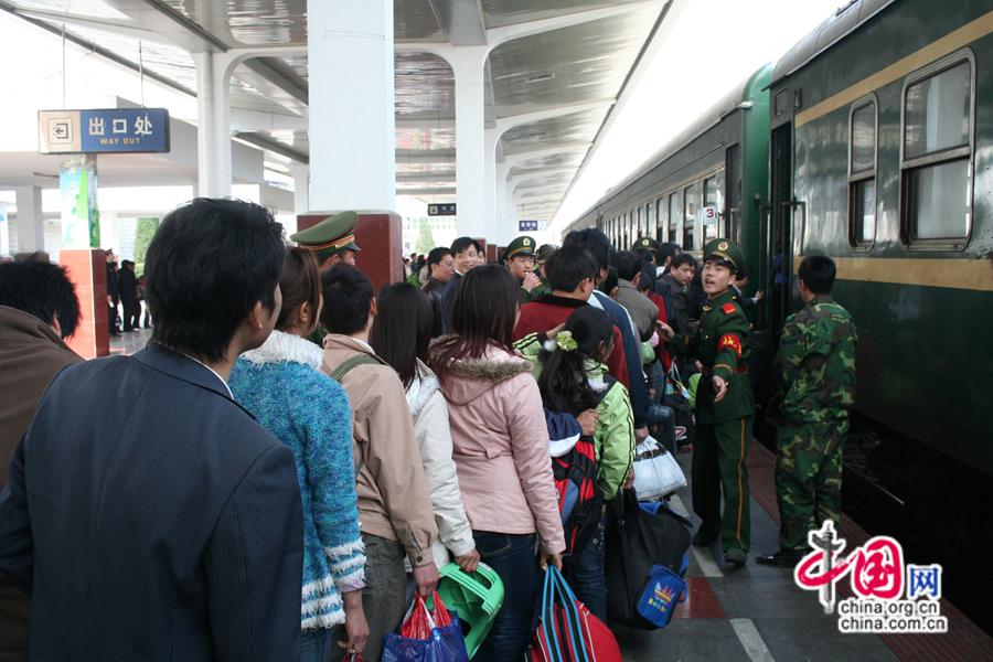 2007春運(yùn),旅客在吉安站排隊登乘“綠皮車”。中國網(wǎng)發(fā) 南鐵供圖