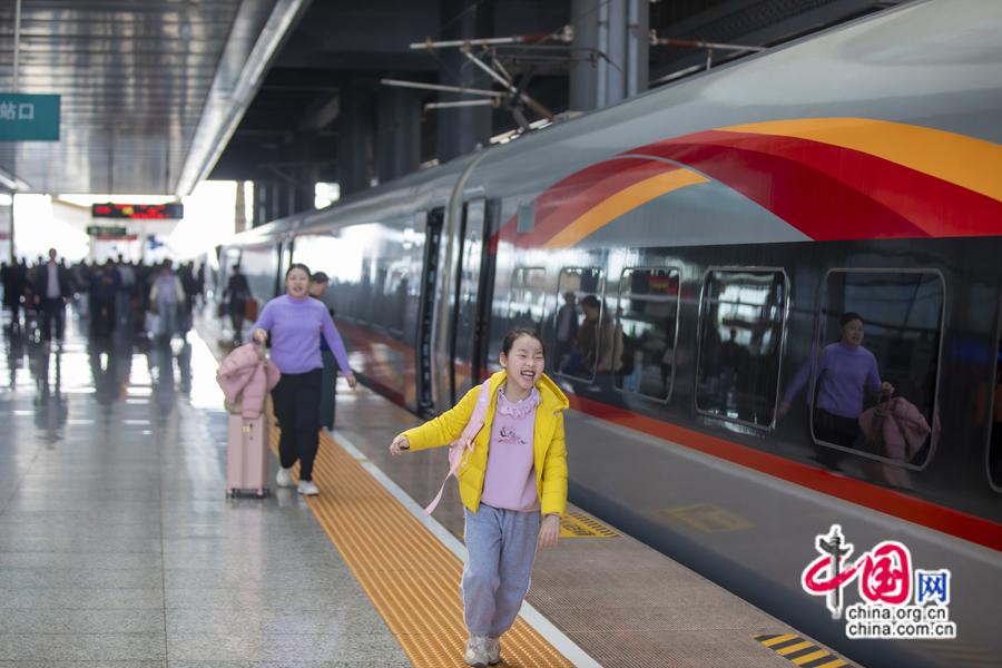 2025年春運(yùn)期間,旅客在贛州西站登乘智能復(fù)興號列車。中國網(wǎng)發(fā) 鄒陽/攝
