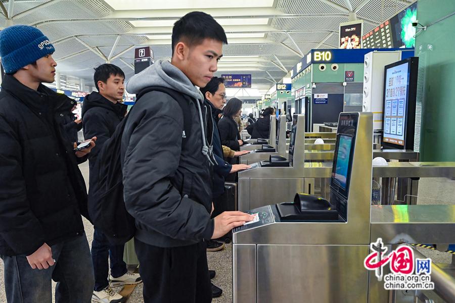 2025年春運(yùn)期間,旅客南昌西站候車廳刷身份證驗票。中國網(wǎng)發(fā) 黃浩/攝