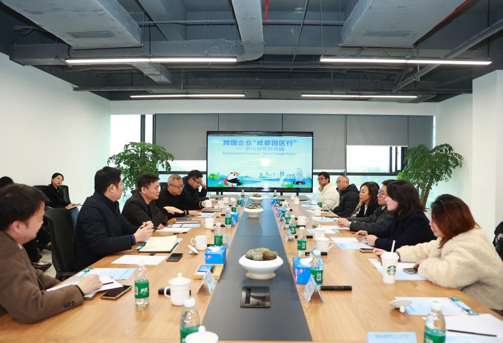 2月21日,部分跨國(guó)企業(yè)代表在成都新川創(chuàng)新科技園參加座談交流。新華社發(fā)