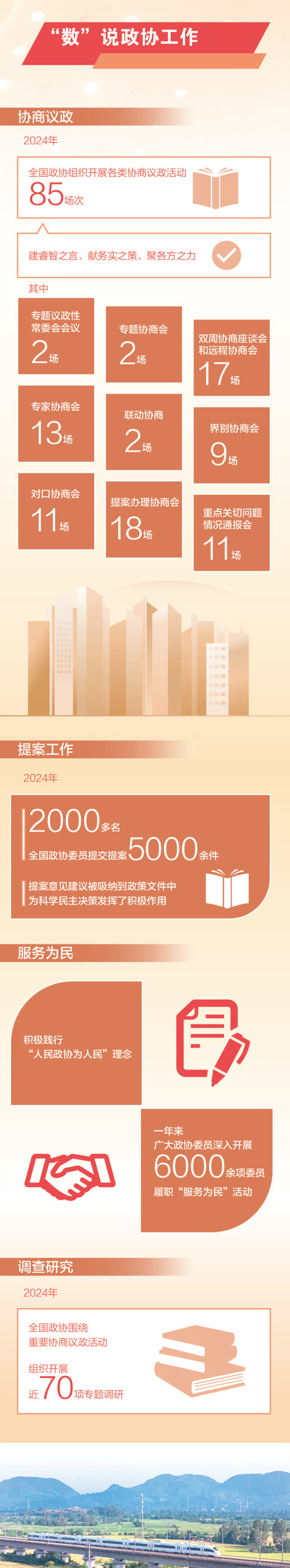 人工智能、綠色低碳、新質(zhì)生產(chǎn)力、文化遺產(chǎn)保護、人口高質(zhì)量發(fā)展、金融高質(zhì)量發(fā)展……協(xié)商議題緊扣“國之大者”和民之關(guān)切;專題議政性常委會會議、專題協(xié)商會、雙周協(xié)商座談會、遠程協(xié)商會、專家協(xié)商會、界別協(xié)商會、提案辦理協(xié)商會……協(xié)商形式豐富多樣,過去一年,全國政協(xié)組織開展各類協(xié)商議政活動85場次。一年來,全國政協(xié)把協(xié)商議政工作放到黨和國家工作大局中精準定位、科學(xué)謀劃,聚焦推進中國式現(xiàn)代化,建睿智之言、獻務(wù)實之策、聚各方之力,協(xié)商議政質(zhì)量和成效不斷提升。