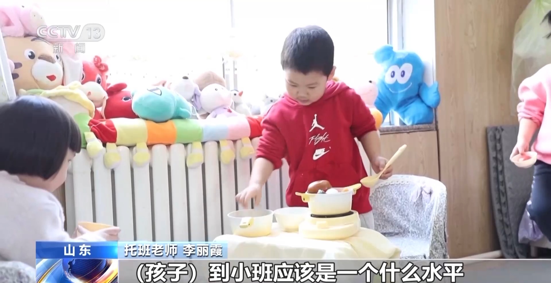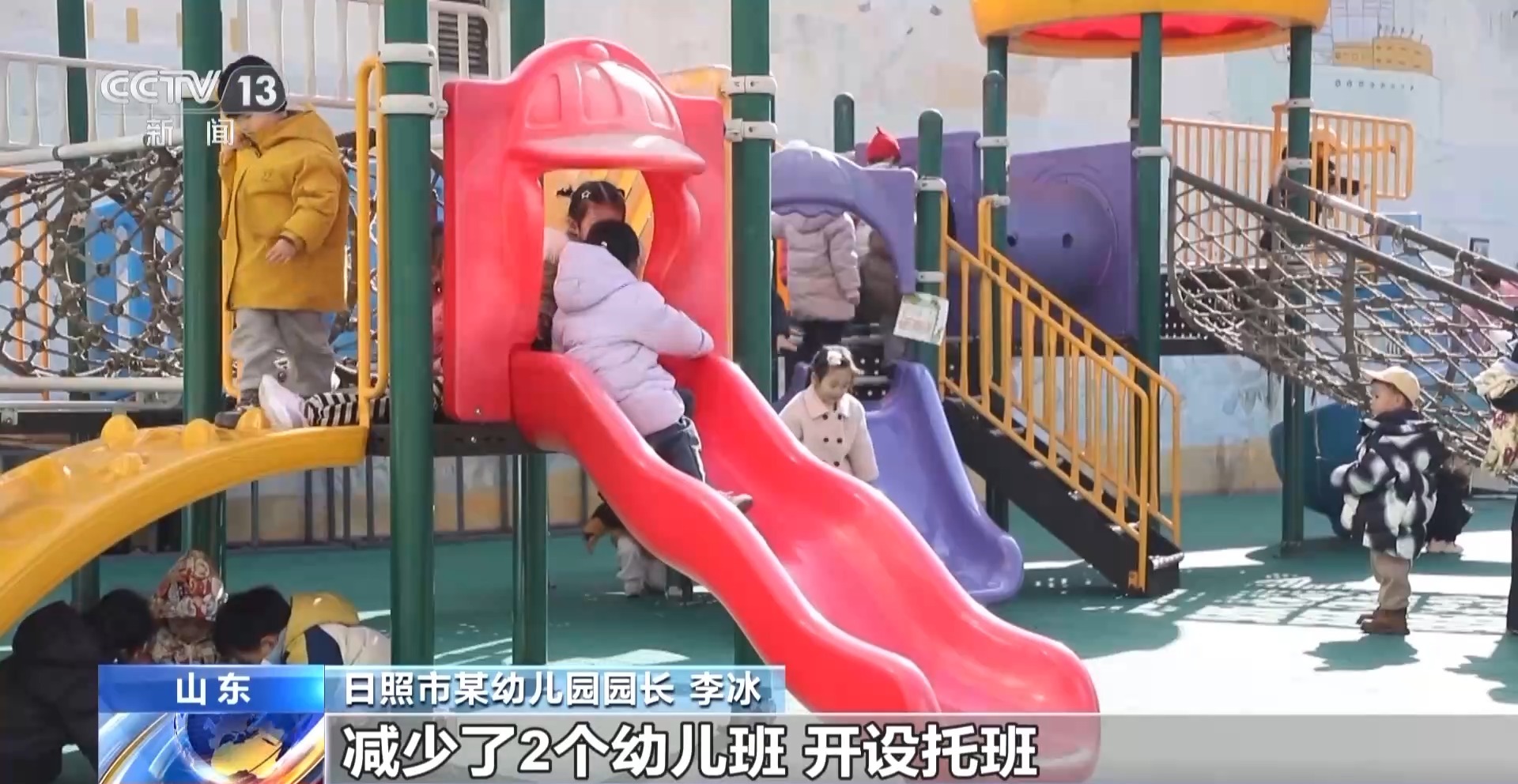 日照市某幼兒園園長 李冰:從2023年開始,我們整合幼兒園校舍、師資等資源,減少了2個幼兒班,開設托班。到去年我們4個園區(qū)招收了5個托班,提供100個托位。
